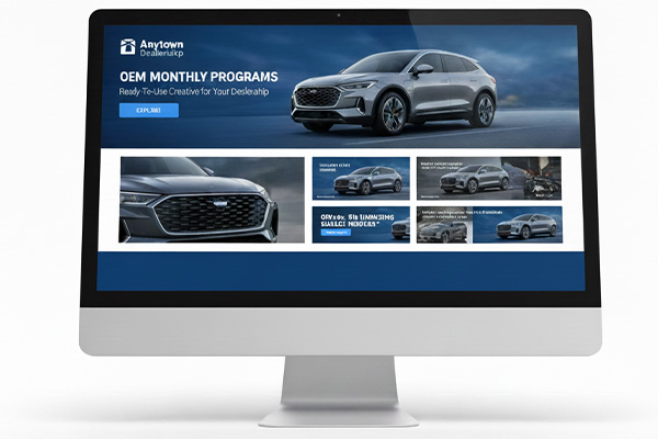 We take OEM monthly programs and turn them into ready-to-use creative for your dealership or group. We prepare banners and visuals in all required sizes, allowing your internal team to easily publish them across your website, social media, Google Business Profile, and print for in-store use. All assets are delivered organized, brand-compliant, and ready to deploy.